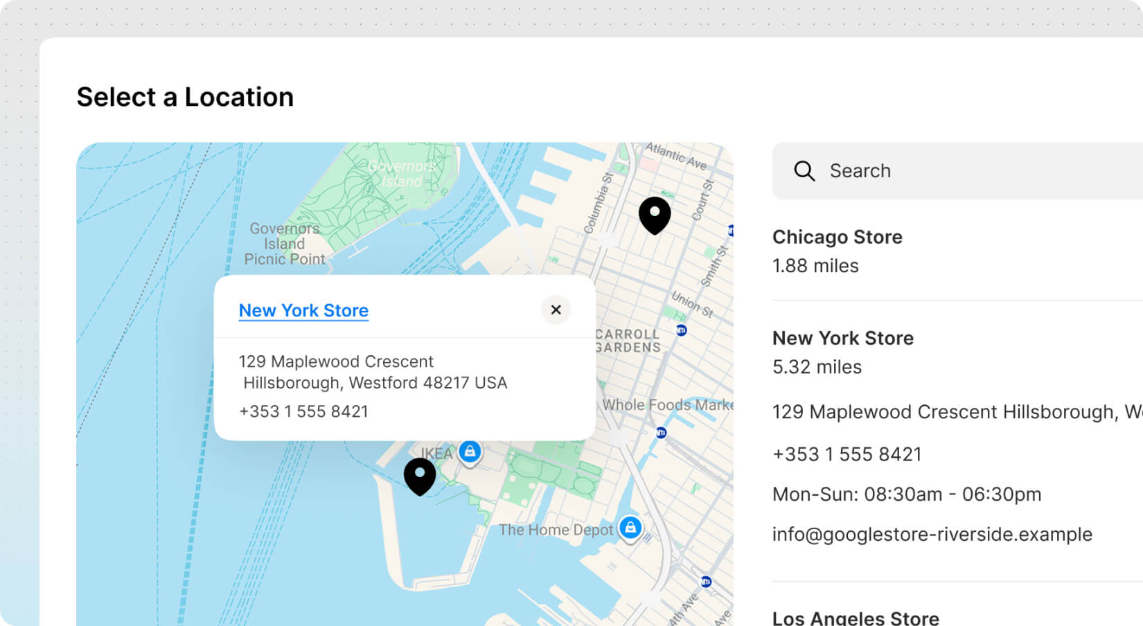 Easily showcase your physical locations with an interactive store locator. Let users find nearby stores using maps, search, and location-based filtering—perfect for franchises, agencies, and multi-location businesses.